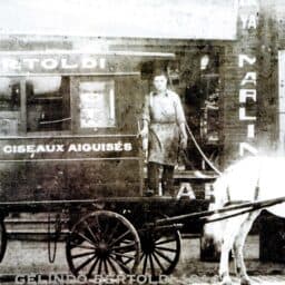 À ses débuts, il possède une simple voiturette qu’il doit pousser pour offrir ses services d’aiguiseur de couteaux. Sa clientèle est principalement constituée de boucheries et des restaurants.