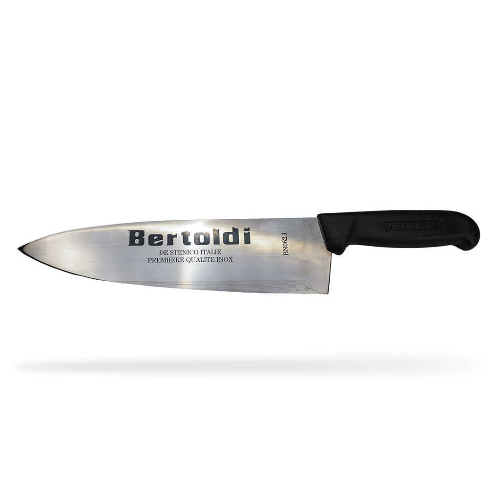 | Bertoldi’s 10″ Tapered Chef’s Knife with black smooth handle