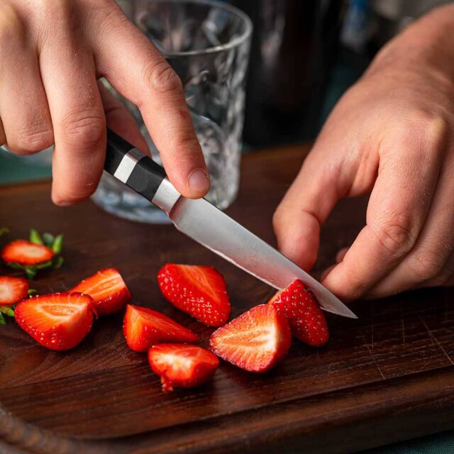 Ce couteau est parfait pour les chefs professionnels et les cuisiniers passionnés. Il est bien équilibré et permet de trancher facilement.