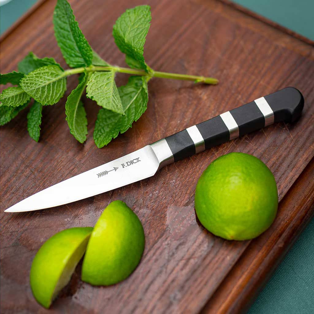 Le Couteau d’office F. Dick 1905 allie un look traditionnel à une touche moderne. Il est fabriqué avec un manche noir et argent relié à une lame en acier inoxydable allemand pour un contrôle supérieur et un tranchant fantastique.